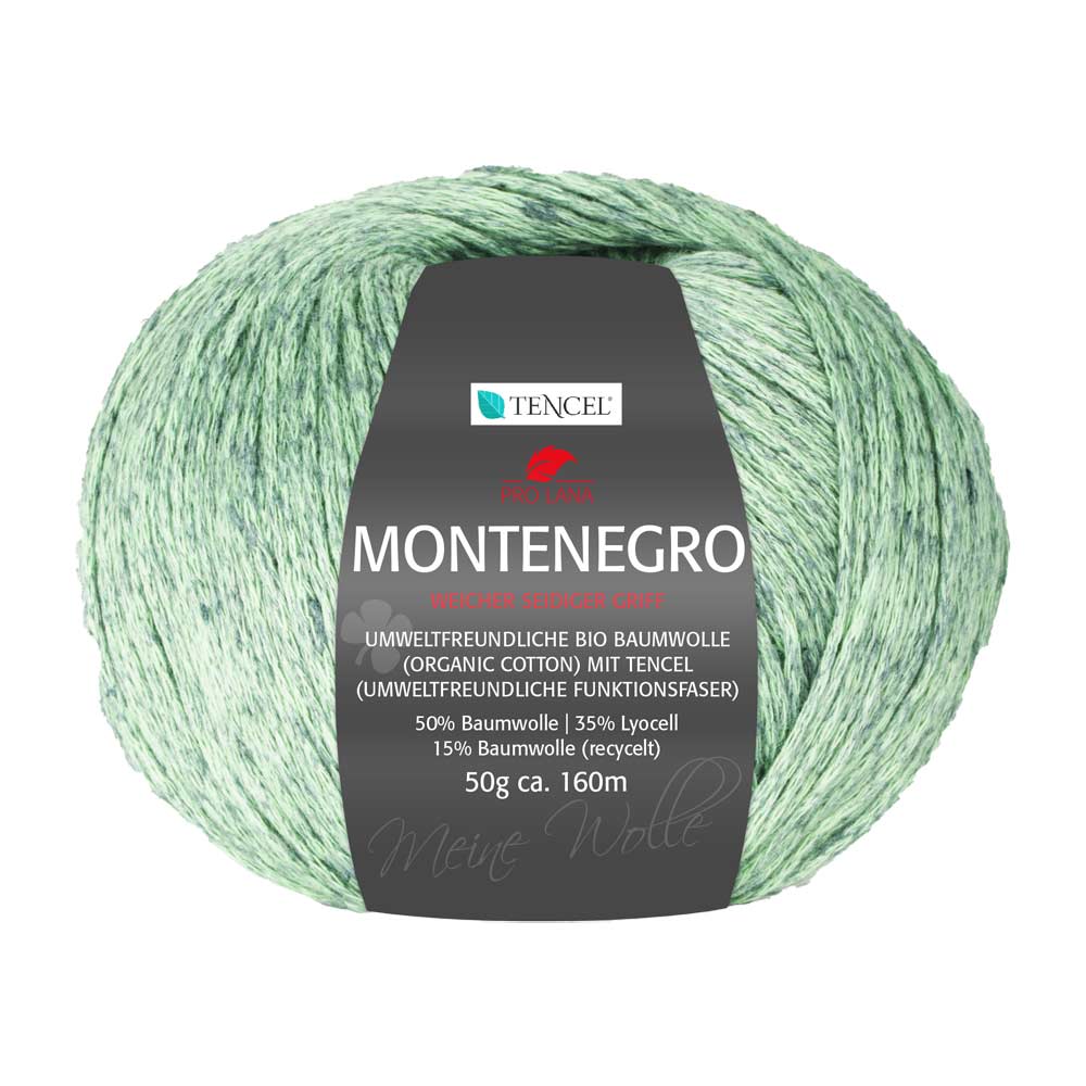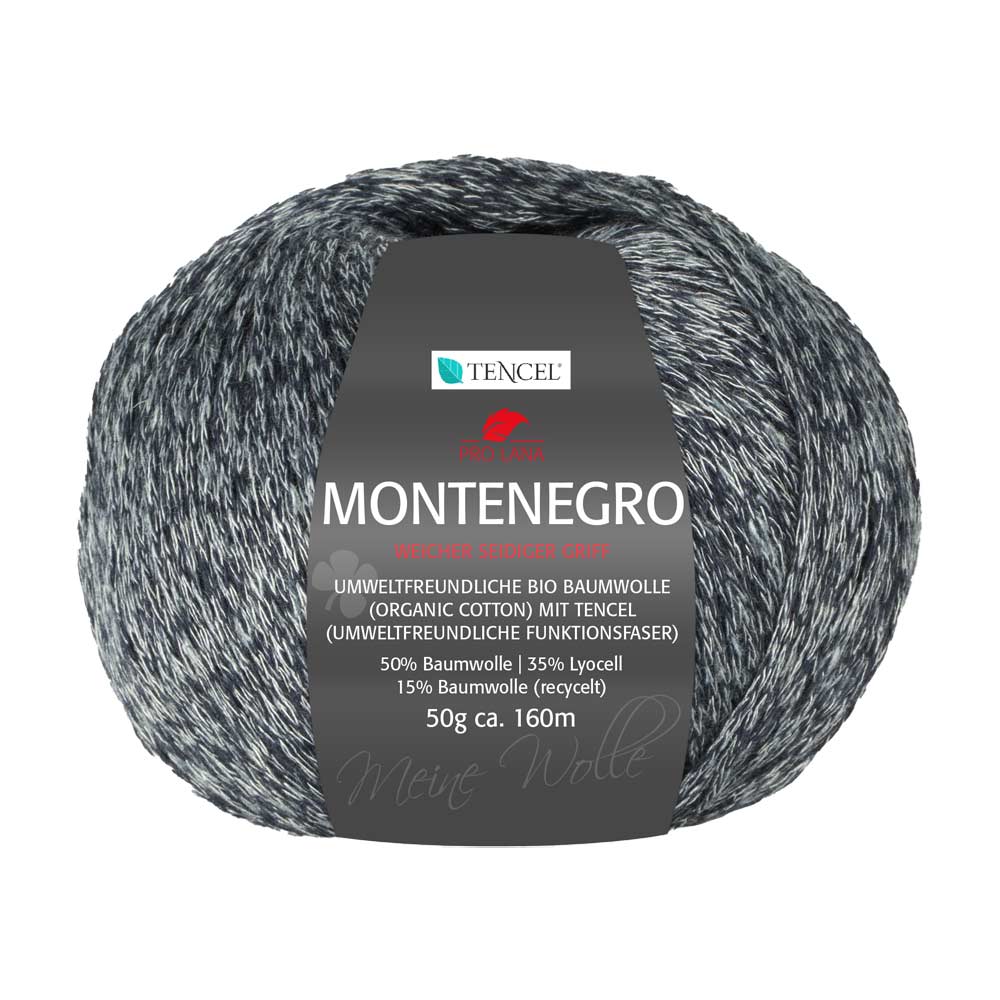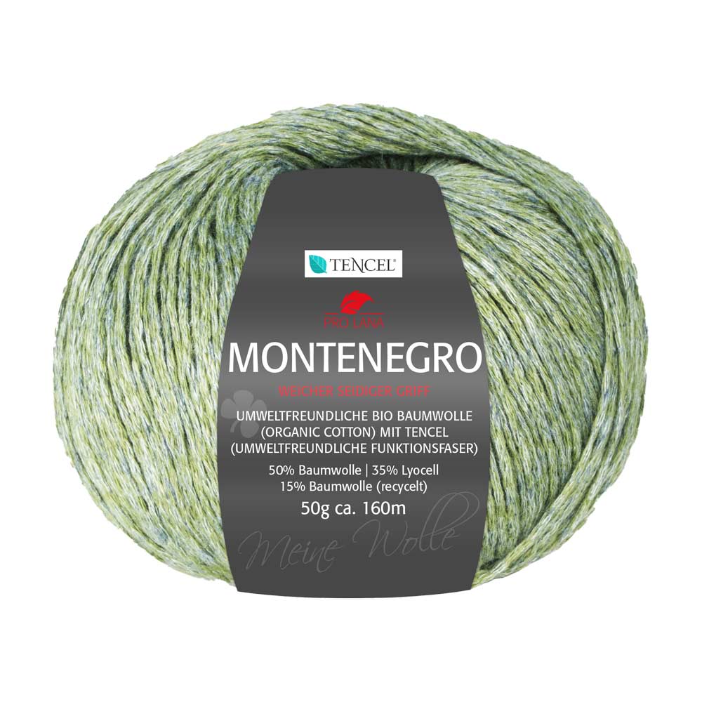 Die Pro Lana Montenegro Wolle ist eine hochwertige Garnmischung, die aus 50 % Baumwolle, 35 % Lyocell und 15 % Polyacryl besteht. Mit einer Lauflänge von ca. 160 m pro 50 g, eignet sich dieses Garn ideal für eine Vielzahl von Strick- und Häkelprojekten, von Kleidungsstücken bis hin zu Accessoires.