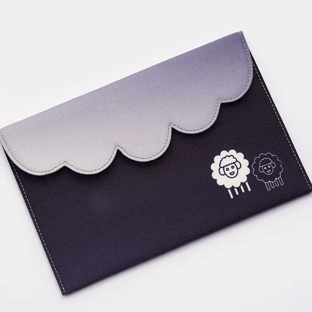 • 1x stilvolles, dunkelgraues Stoffetui mit Schäfchenillustration